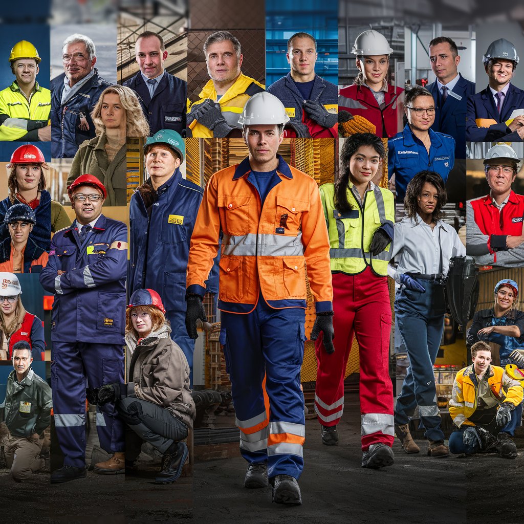 Durable and functional workwear for various industries such as construction, manufacturing, and logistics, including coveralls, safety vests, and protective gear.